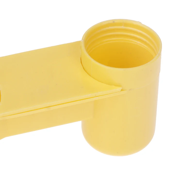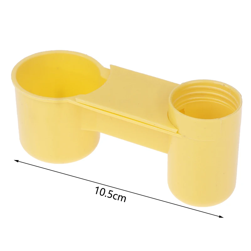 This drinker lets you use a bottle hanging on the outside of your bird and small animal cages.